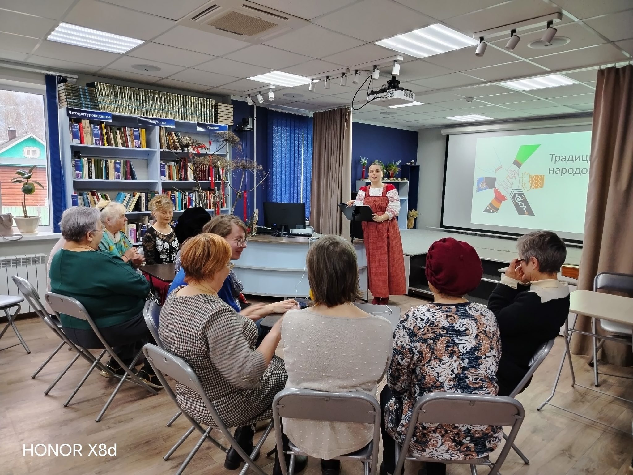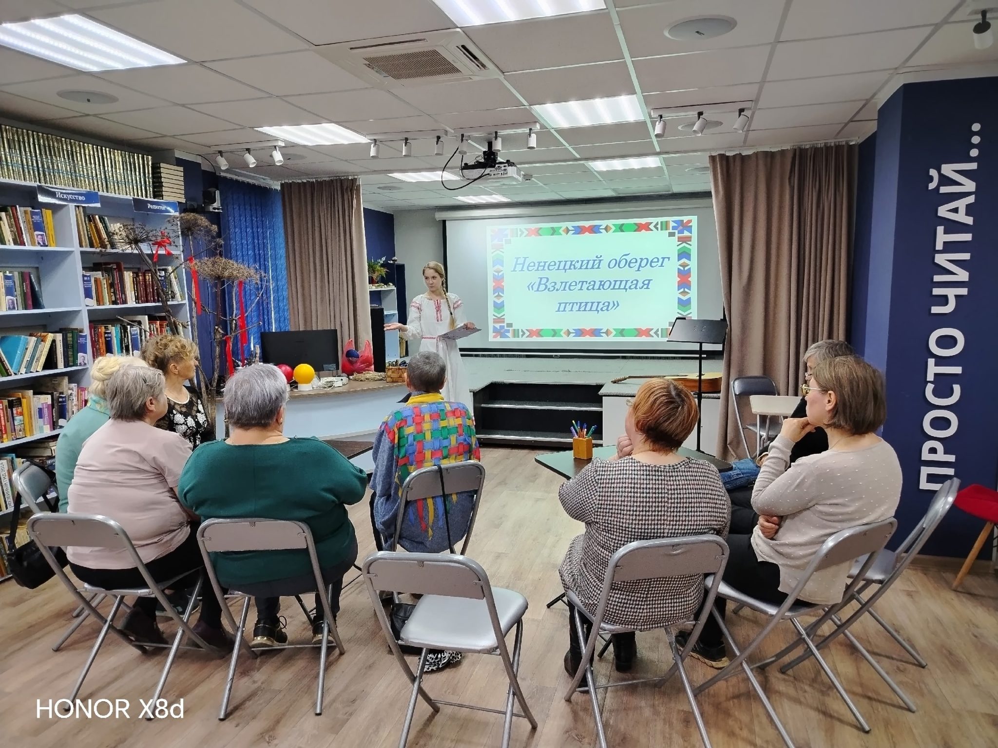 Завершилась Библионочь просмотром короткометражного фильма «Настоящая» -о женщинах, хранительницах культуры многонациональной России. «Настоящая» — серия документальных фильмов, запущенная в 2026 году Всероссийским общественным движением «Волонтёры культуры» совместно с «Добро.Медиа».