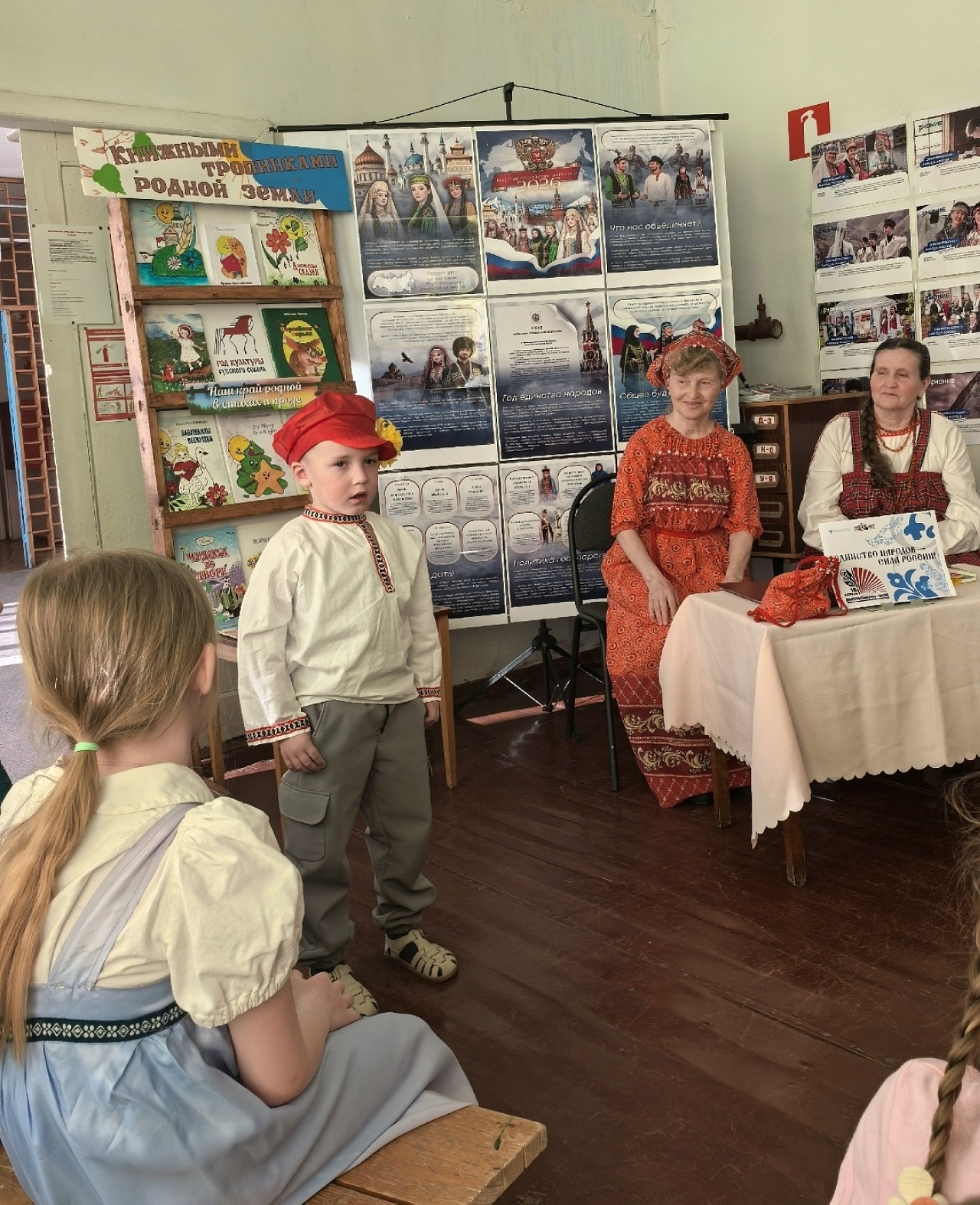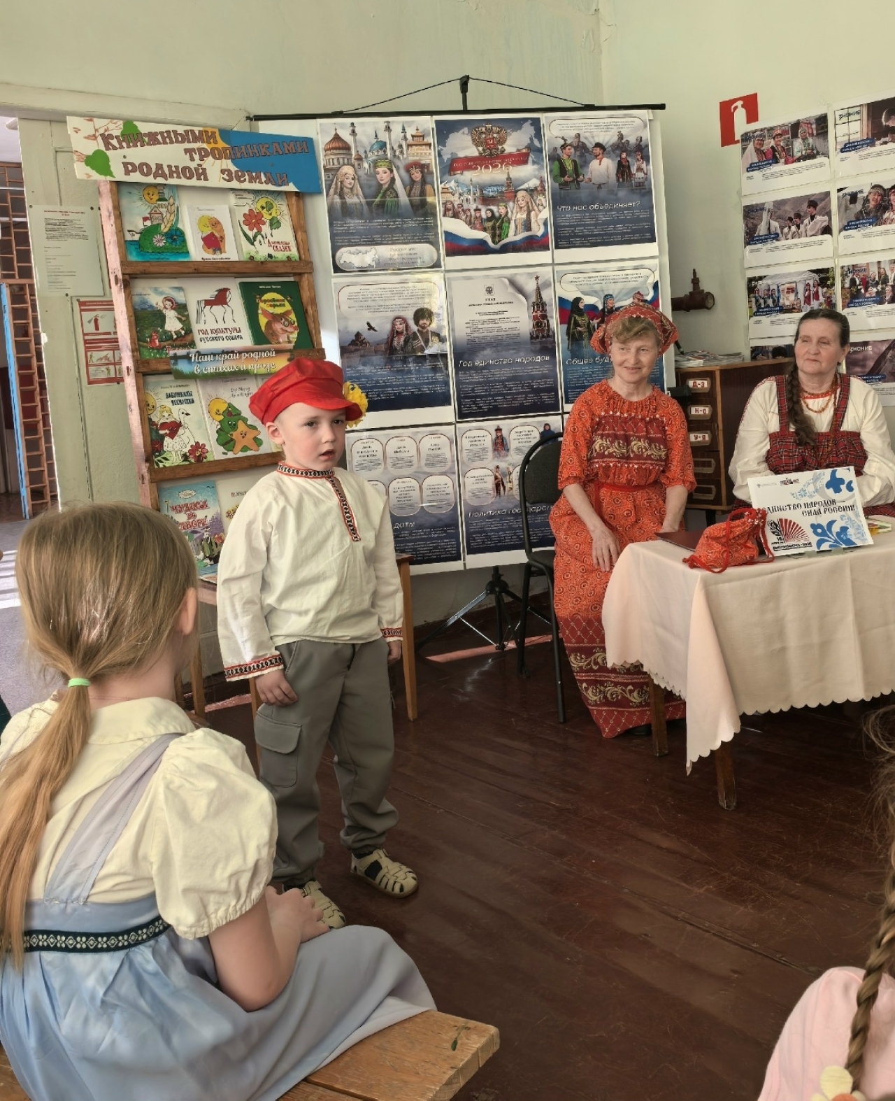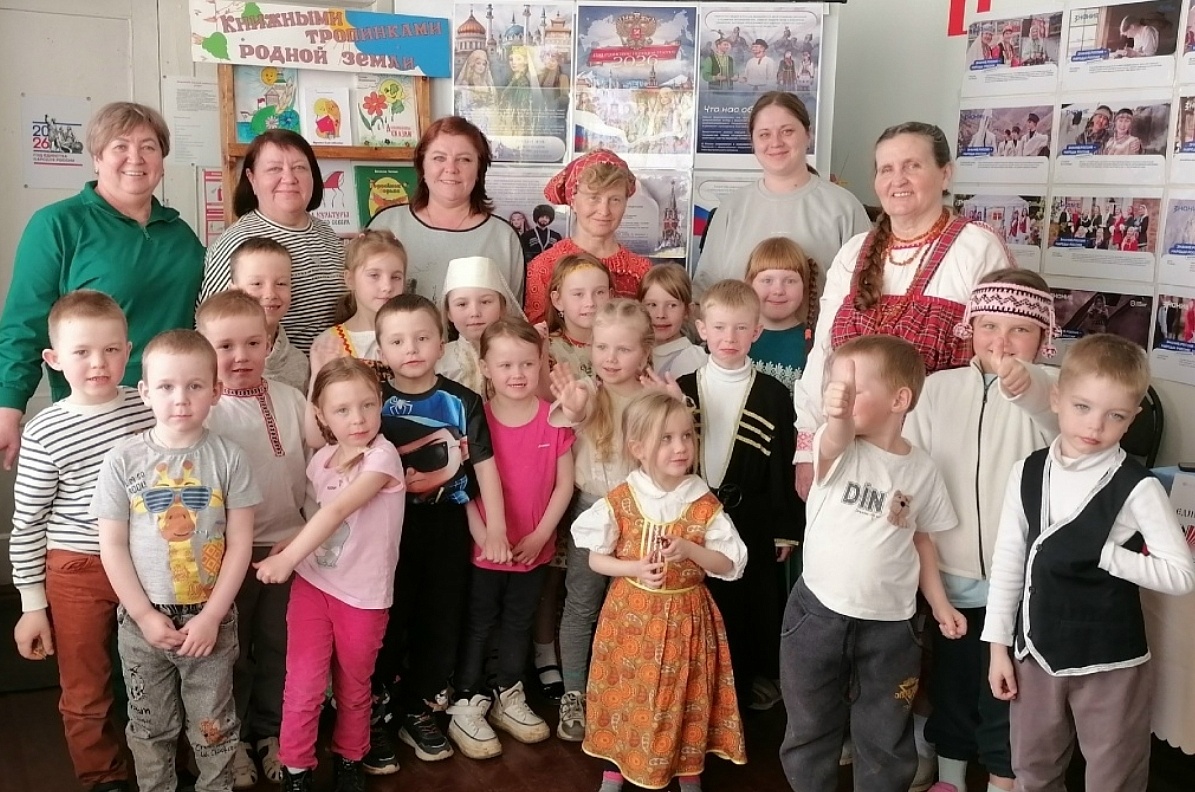 Продолжили сказочные библиосумерки дошкольники. Они нарядились в национальные костюмы и прочитали стихи народов России.
