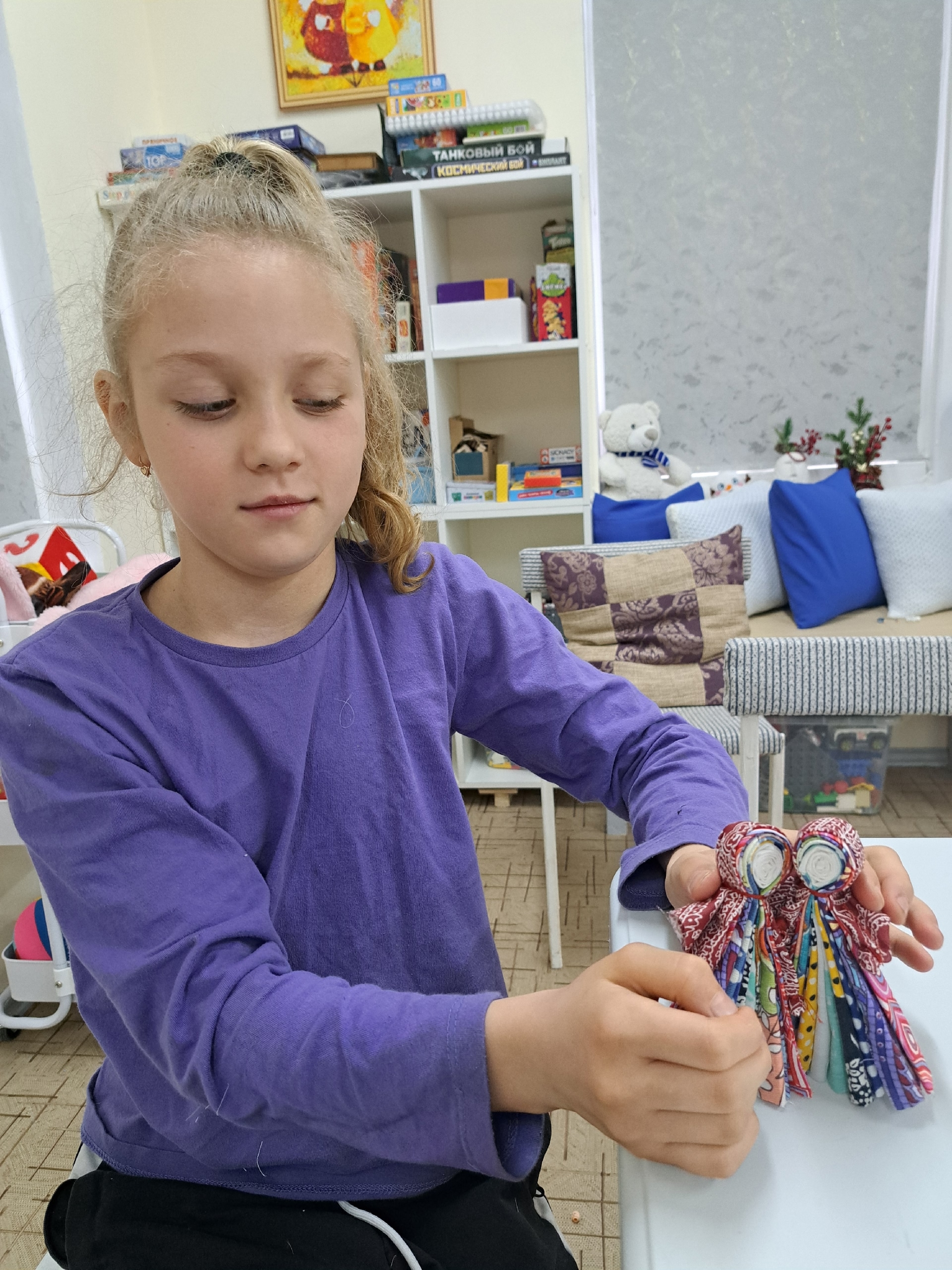 В центральную часть куклы размещали кусочек материи из одежды того, кто больше всего нуждался в защите. Это мог быть ребенок или взрослый. Таким образом мастерица укрепляла энергетику всей семьи и создавала круг защиты для самого слабого.